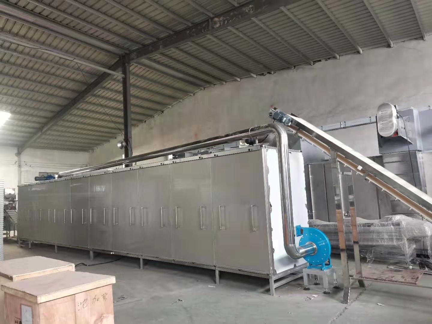 7、多層烤箱:烤箱多為電烤箱,溫度在0-200度之間通過(guò)控制柜自行調(diào)節(jié),內(nèi)部為不銹鋼雙層網(wǎng)袋,烘烤時(shí)間可以根據(jù)速度調(diào)節(jié),通過(guò)烘烤使得主料與芯料在一定程度上滲透,增加口感,同時(shí)減少物料水分,增加保質(zhì)期。