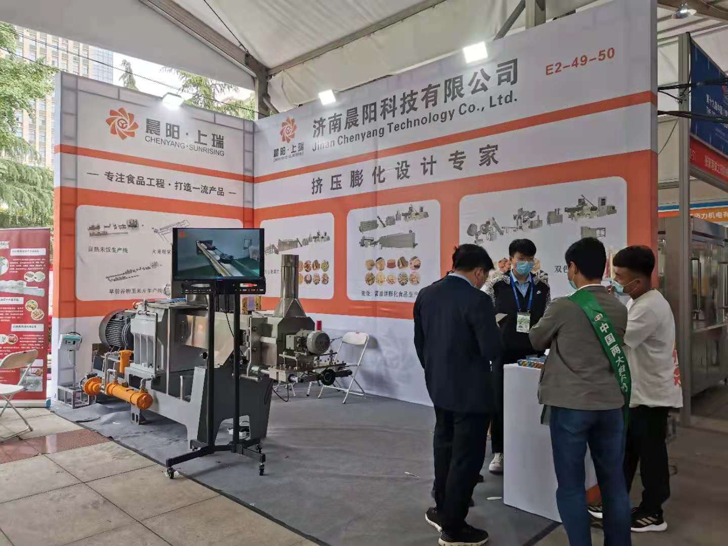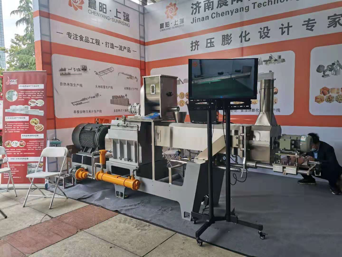 濟(jì)南晨陽科技專注于擠壓膨化行業(yè),我們的設(shè)備有 夾心米果設(shè)備 自加熱米飯設(shè)備 膨化食品設(shè)備 寵物飼料設(shè)備 營養(yǎng)大米設(shè)備 水果燕麥片生產(chǎn)線 米果膨化機(jī) 營養(yǎng)米粉設(shè)備 變性淀粉生產(chǎn)線 可食用大米吸管設(shè)備 寵物咬膠設(shè)備 嬰兒磨牙棒機(jī)器設(shè)備,展會空間有限 只能做部分展示,想了解更多,歡迎各位來我司參觀!??!