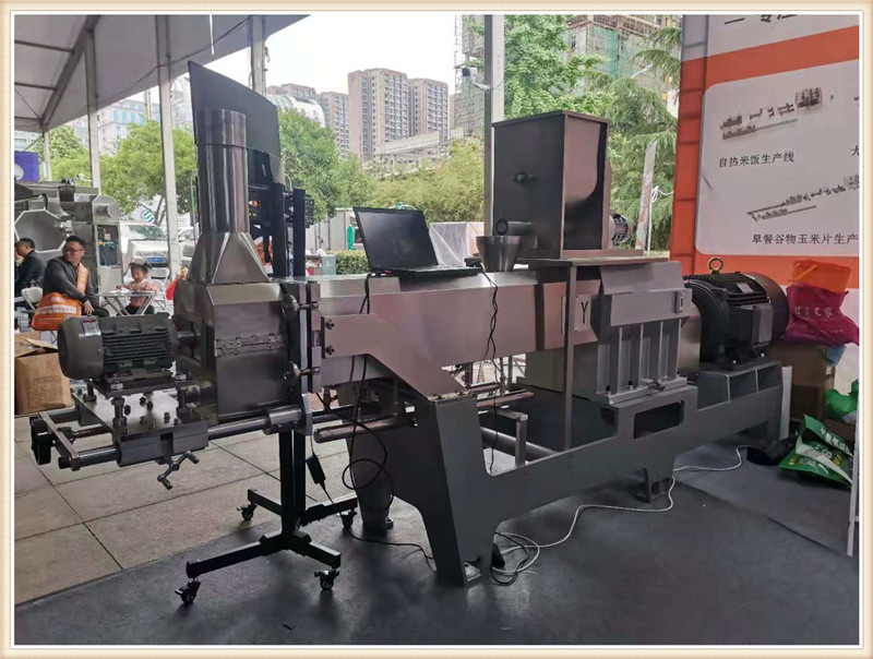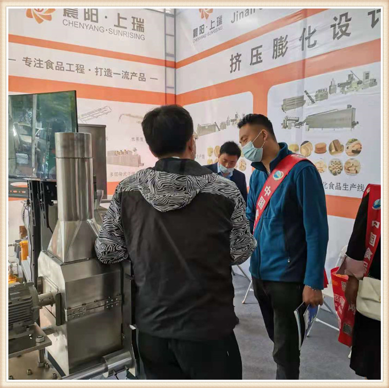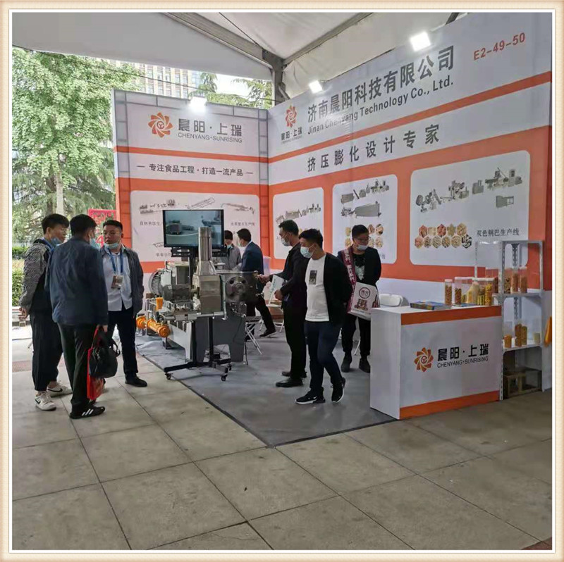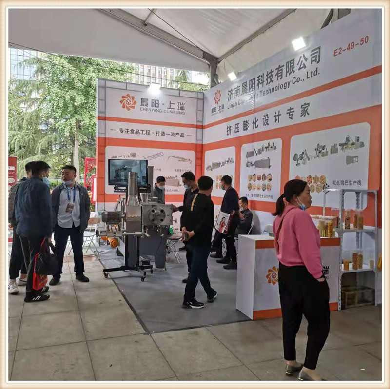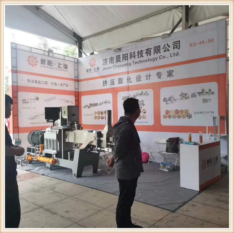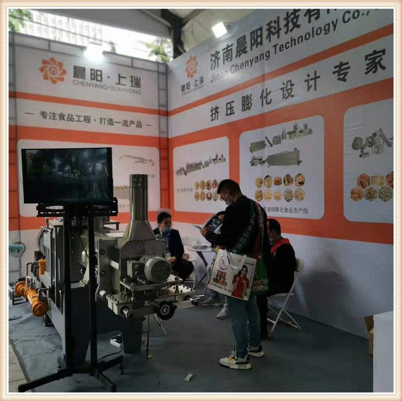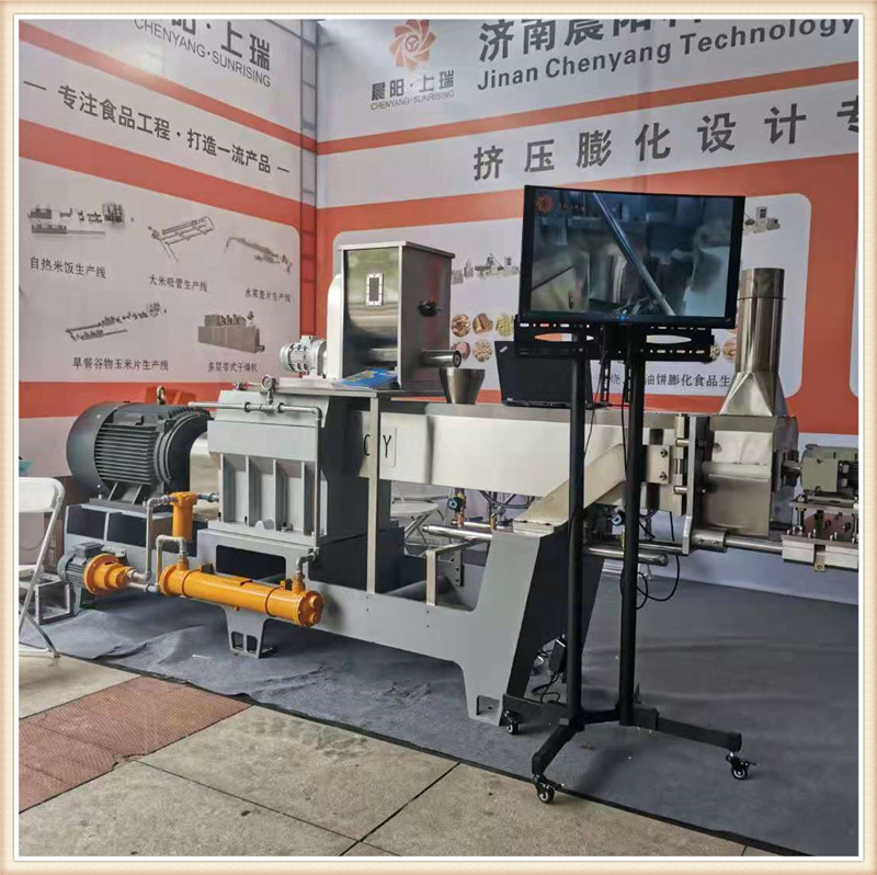濟(jì)南晨陽(yáng)公司攜帶新款CY65雙螺桿膨化主機(jī)亮相第19屆漯河食品博覽會(huì),一經(jīng)亮相,變引起了眾多膨化食品生產(chǎn)企業(yè)的關(guān)注咨詢。詳細(xì)詢問該新款機(jī)型的性能特點(diǎn),和核心產(chǎn)品加工。該款65主機(jī)搭載45kw-6級(jí)電機(jī)直連傳動(dòng),齒輪箱使用原裝南京擠出機(jī)箱體,螺桿使用分段積木組合結(jié)構(gòu),機(jī)桶使用內(nèi)壁噴涂耐磨襯套材料。機(jī)桶恒溫控制,PLC自動(dòng)控制,切割模頭升級(jí)。