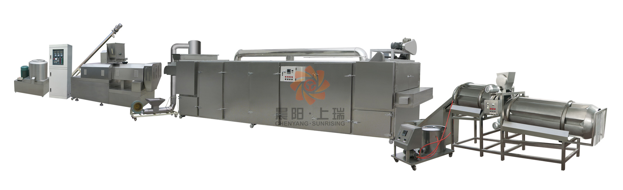 大家都知道:傳統(tǒng)的膨化狗糧顆粒,主要原料是淀粉類的谷物,主要是玉米,肉類超過(guò)了一定比例,就不能夠膨化成型,做出來(lái)的形狀就不夠美觀。所以,用傳統(tǒng)擠壓膨化工藝的設(shè)備生產(chǎn)出的狗糧顆粒,只能是低蛋白高淀粉類的顆粒。不能夠生產(chǎn)出高蛋白的狗糧顆粒,針對(duì)以上原因和市場(chǎng)需求的現(xiàn)實(shí),我們濟(jì)南晨陽(yáng)科技有限公司,研發(fā)出一整套純?nèi)夤芳Z機(jī)器設(shè)備生產(chǎn)線,只為滿足高端狗糧需求者的客觀需求。