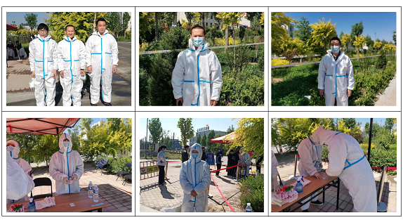 戰(zhàn)疫展勞模本色,艱難顯志愿精神。在勞動(dòng)節(jié)期間, 晨陽公司3名員工參與工業(yè)園區(qū)的志愿者防疫工作,集合進(jìn)行崗前培訓(xùn)。醫(yī)務(wù)工作者向大家講述了信息采集平臺(tái)的使用、防護(hù)的穿脫等基本操作和注意事項(xiàng),大家著裝完畢后就奔向各自的工作崗位,開始了緊張有序的工作。正午時(shí)分,艷陽高照,身著防護(hù)服的教職工志愿者們口干舌燥,衣衫也早已被汗水打濕,但是他們依然毫無怨言地堅(jiān)守著崗位,為確保工業(yè)園區(qū)員工有序地開展核酸檢測(cè)貢獻(xiàn)著自己的力量。