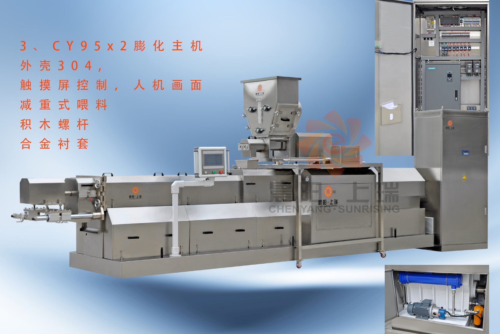 膨化玉米粉生產(chǎn)線主要用于膨化谷物單一原料,大米粉或者玉米粉為主。膨化產(chǎn)品容重要求粉碎前140G/L,膨化后容重450g/L