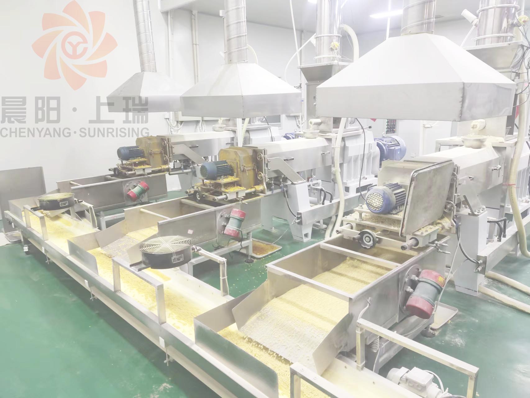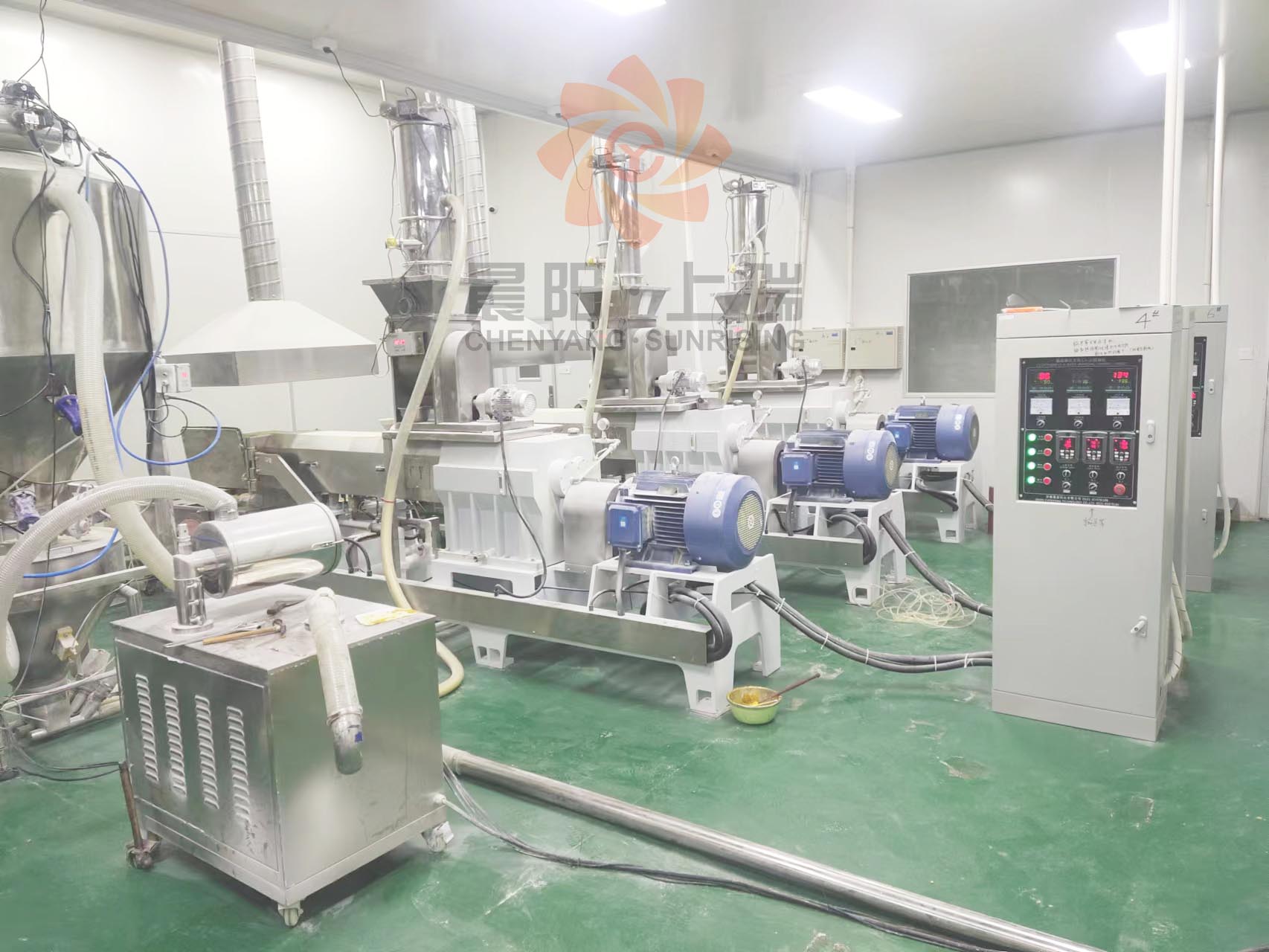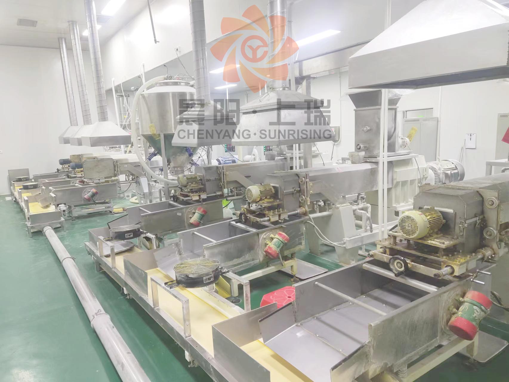 客戶因早餐營(yíng)養(yǎng)粉(沖調(diào)類營(yíng)養(yǎng)粉)市場(chǎng)需求不斷增加,產(chǎn)能需求日益旺盛增加,與晨陽(yáng)分多次訂購(gòu)營(yíng)養(yǎng)粉加工膨化設(shè)備,為保證產(chǎn)品的高質(zhì)量生產(chǎn),客戶生產(chǎn)車(chē)間使用無(wú)塵凈化車(chē)間。采用濟(jì)南晨陽(yáng)自主研發(fā)的新型62雙螺桿膨化機(jī),本型號(hào)的機(jī)器單機(jī)產(chǎn)能300公斤每小時(shí),本機(jī)型運(yùn)行穩(wěn)定,產(chǎn)品質(zhì)量在同行業(yè)排在前端,客戶用該機(jī)型24小時(shí)不間斷連續(xù)運(yùn)行,單機(jī)日產(chǎn)能7.2噸。該機(jī)型在客戶工廠經(jīng)住考驗(yàn),得到客戶的充分肯定。在日產(chǎn)7噸的產(chǎn)能下已經(jīng)復(fù)制6臺(tái)機(jī)器,擴(kuò)產(chǎn)到日產(chǎn)能到45噸,產(chǎn)能和質(zhì)量的穩(wěn)定在同行業(yè)已經(jīng)達(dá)到頂端??蛻舾鶕?jù)市場(chǎng)需求,已經(jīng)在研產(chǎn)新的生產(chǎn)線,規(guī)劃未來(lái),未雨綢繆!感謝客戶的信任,我們將一如既往的用熱情的服務(wù)和更高的質(zhì)量回饋客戶嗎,合作共贏,同謀發(fā)展!
