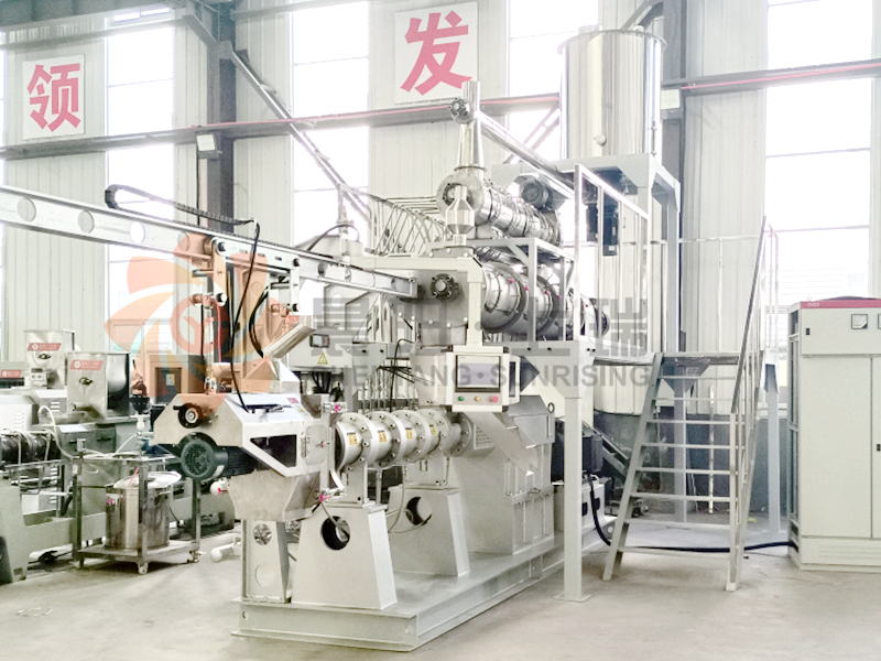 雙螺桿膨化機由供料系統(tǒng)、擠壓系統(tǒng)、旋切系統(tǒng)、加熱系統(tǒng)、冷卻系統(tǒng)、傳動系統(tǒng)、控制系統(tǒng)組成。該機適用原料廣泛、生產(chǎn)產(chǎn)品多樣,變頻調(diào)速、自動化程度高、運行平穩(wěn)、使用壽命長。