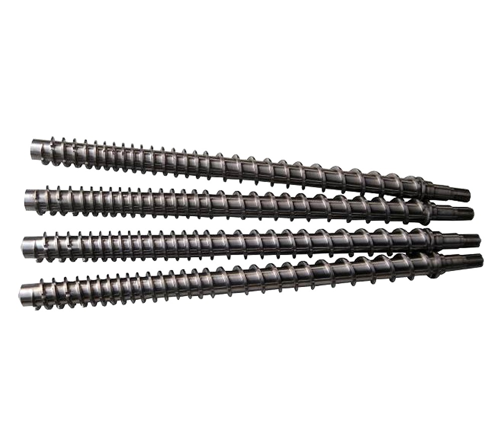 (2)擠出系統(tǒng): 由螺桿,機(jī)筒,連接段組成; 螺桿為38crmoal材料,滲氮深度5mm,耐磨耐用,機(jī)筒為國標(biāo)45號鋼,與螺桿配合間隙控制在0.5mm以內(nèi)