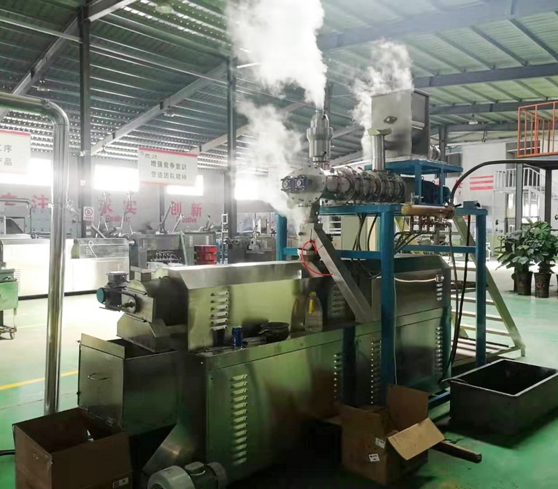 本生產(chǎn)線(xiàn)改變生產(chǎn)工藝流程可以生產(chǎn)寵物食品狗糧、貓糧、魚(yú)飼料等產(chǎn)品。鮮肉添加比例可以達(dá)到30%,滿(mǎn)足動(dòng)物對(duì)蛋白的營(yíng)養(yǎng)需求。膨化機(jī)可以選用干法膨化和濕法膨化;烘干機(jī)可以根據(jù)電、燃?xì)?、蒸汽能源使用合理設(shè)計(jì);調(diào)味設(shè)備有單滾筒,雙滾筒連續(xù)調(diào)味機(jī),單頭自動(dòng)稱(chēng)重八角調(diào)味機(jī)、雙頭八角自動(dòng)調(diào)味機(jī)、滾筒式批次稱(chēng)重調(diào)味機(jī)等。