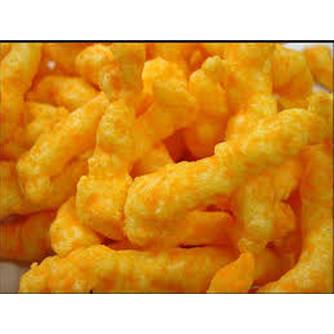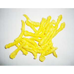 奇多是一種特殊的擠壓膨化型小食品,玉米糝進(jìn)入旋轉(zhuǎn)頭擠壓機(jī)中,在擠壓機(jī)兩個(gè)轉(zhuǎn)盤的 擠壓與揉搓作用下,玉米糝形成不規(guī)則的扭曲形狀,然后切刀將其切成所需長(zhǎng)度的產(chǎn)品。奇多可以油炸后調(diào)味,也可焙烤后調(diào)味,因 其美味而深受消費(fèi)者歡迎。