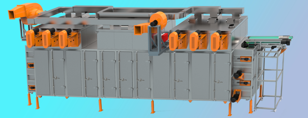 5、每2米為一個獨立干燥段,干燥段風(fēng)壓和風(fēng)速獨立循環(huán)控制,適用不同產(chǎn)量和不同產(chǎn)品的烘干。