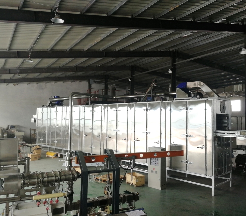 濟南晨陽公司的燃氣帶式干燥機是一種的熱風(fēng)循環(huán)干燥設(shè)備,采用的熱風(fēng)十字穿流烘干技術(shù),廣泛用于擠壓膨化的各類寵物食品、水產(chǎn)飼料、組織蛋白、拉絲蛋白、休閑食品、雜糧、蔬菜、醫(yī)藥及化工等行業(yè)的顆粒和片狀物料的干燥處理。其的烘干結(jié)構(gòu)決定了在寵物食品和魚飼料行業(yè)中有其它類型干燥機不可比擬的優(yōu)勢,主要體現(xiàn)在物料干燥后的水分不均勻度值小、綜合能耗值低、烘干速度快、產(chǎn)量高等優(yōu)點,實現(xiàn)了低溫烘干限度破壞飼料營養(yǎng)成分含量和破損率低的工況。
