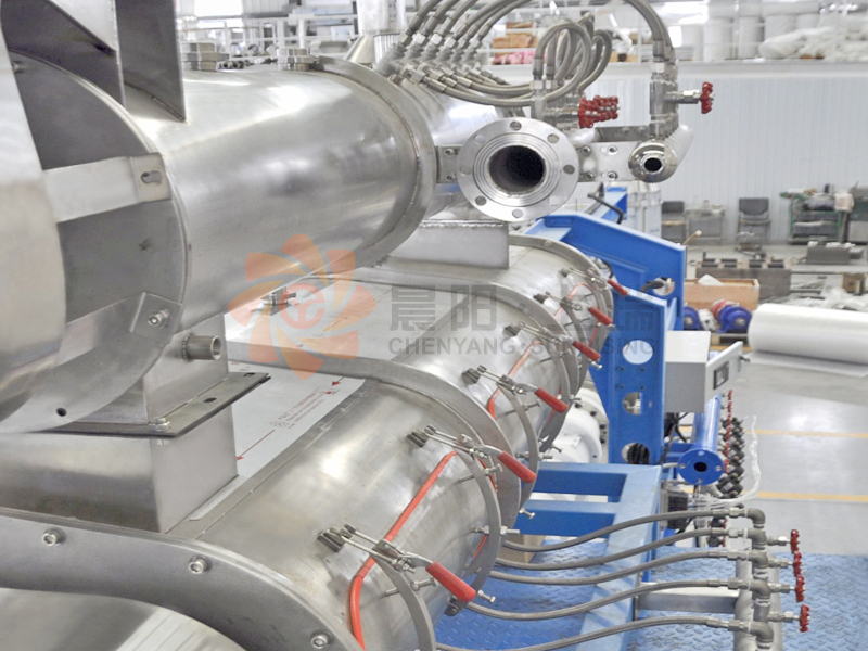 雙螺桿膨化機(jī)由供料系統(tǒng)、擠壓系統(tǒng)、旋切系統(tǒng)、加熱系統(tǒng)、冷卻系統(tǒng)、傳動(dòng)系統(tǒng)、控制系統(tǒng)組成。該機(jī)適用原料廣泛、生產(chǎn)產(chǎn)品多樣,變頻調(diào)速、自動(dòng)化程度高、運(yùn)行平穩(wěn)、使用壽命長(zhǎng)。